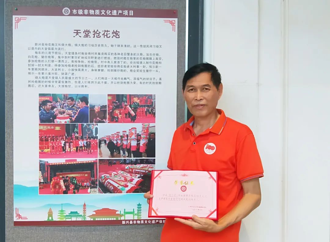抢花炮既有着去晦气、添福气的吉祥福祉,也寓意着来年全村人丁兴旺、五谷丰登、六畜兴旺。在实施乡村振兴战略的过程中,《天堂抢花炮》项目先后成功列为新兴县和云浮市非物质文化遗产保护名录,而作为《天堂抢花炮》非物质文化遗产代表继承人的倪小君,就不得不讲述一下他的故事了。