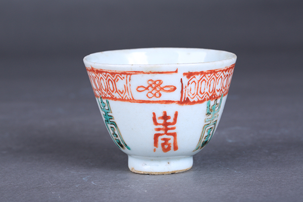 清五彩寿字花卉纹瓷杯