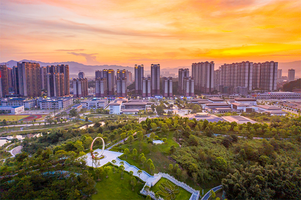推窗见绿,城在林中,出门入园已融入了新兴人民的日常生活。森林环抱城市,市民共享“生态红利”。