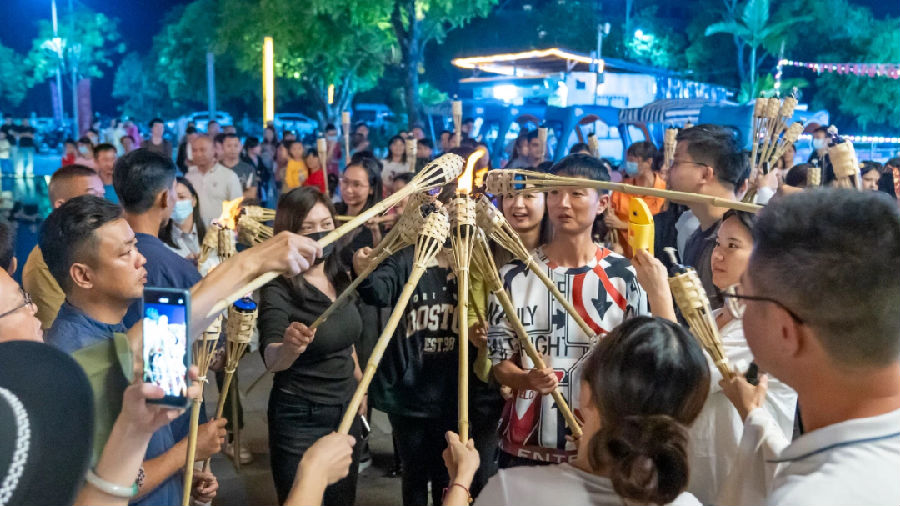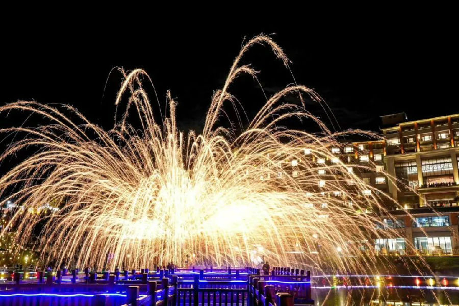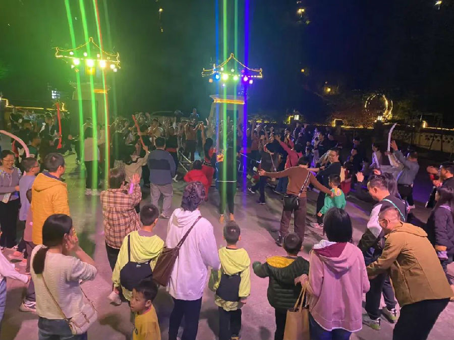 元旦假期,新兴县禅域小镇举办了篝火晚会、米粉嘉年华、跨年音乐会、烟花汇演、汉服巡游、公主招驸马、醒狮展等活动,让游客们在欢乐的氛围中喜迎新年,度过一个难忘的元旦假期,景区在元旦期间迎来客流高峰。游客反馈在景区互动体验很好,在新兴度过了一个难忘的假期。